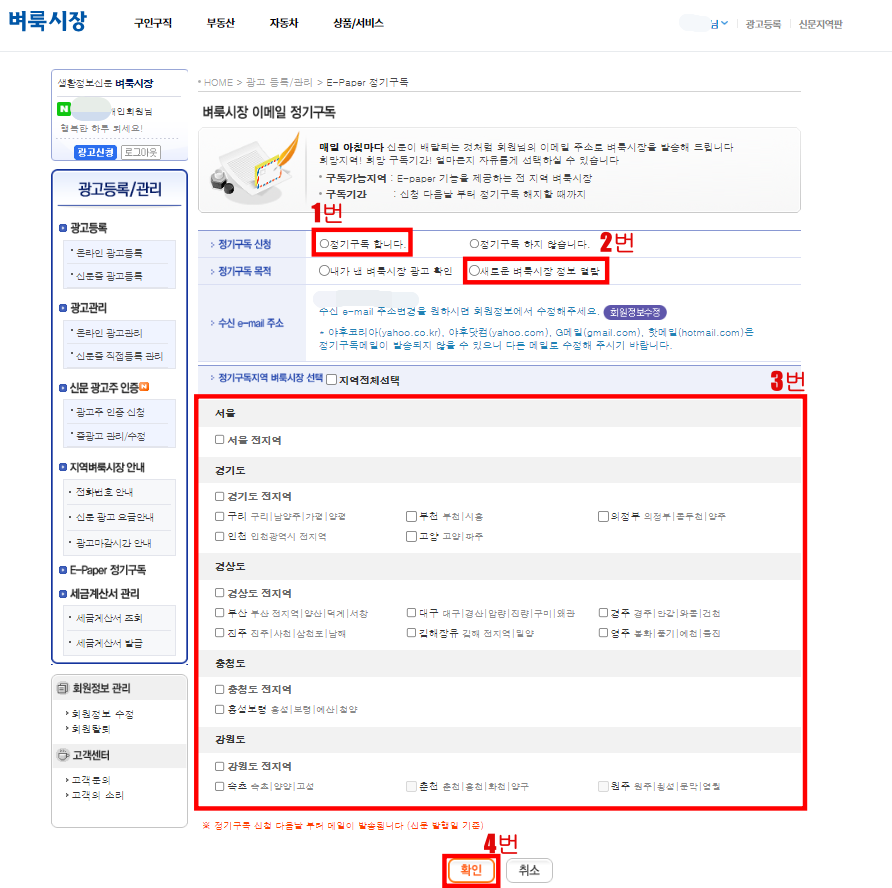 벼룩시장 이메일 정기구독하여 구인구직 정보 보기