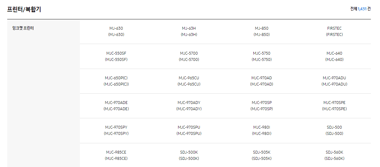 본인의 프린터 모델을 모르는 경우 검색창에 프린터라고만 기재하고 다음 화면에서 본인의 프린터 모델을 찾아 클릭합니다.