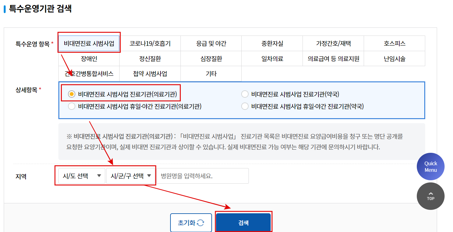 - 비대면진료 시범사업 진료기관(의료기관) 선택하기
