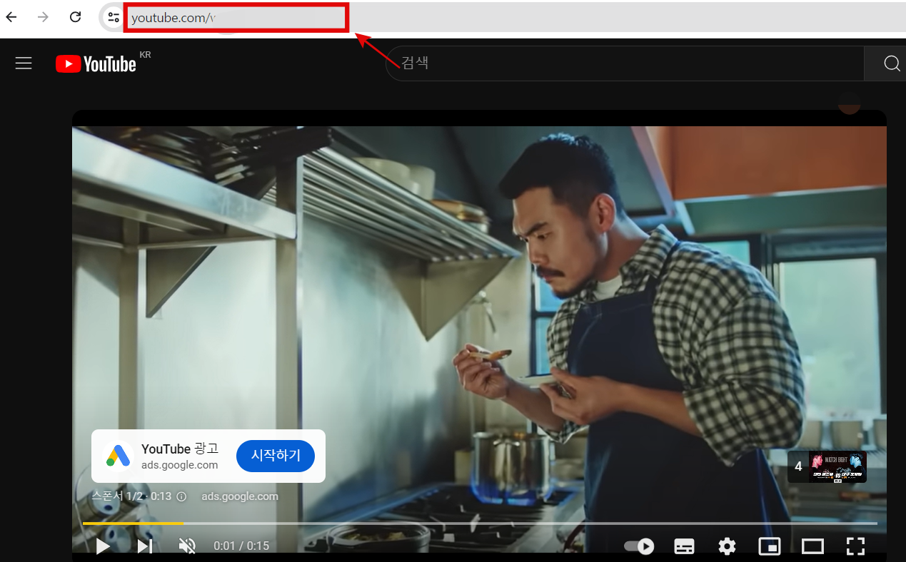 - 필요한 영상이 있는 사이트에서 영상 주소를 복사하기