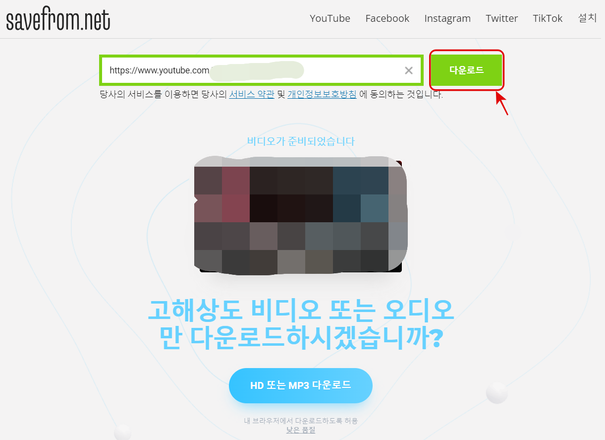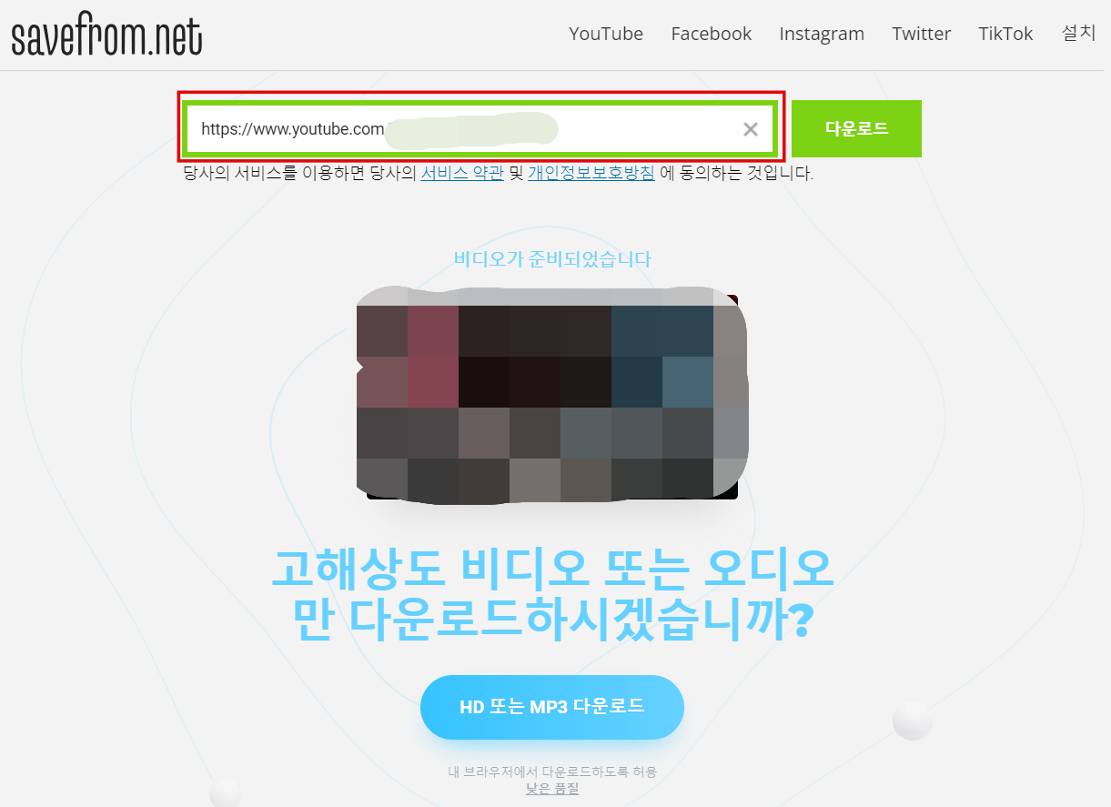 savefrom.net 영상 다운로드 방법