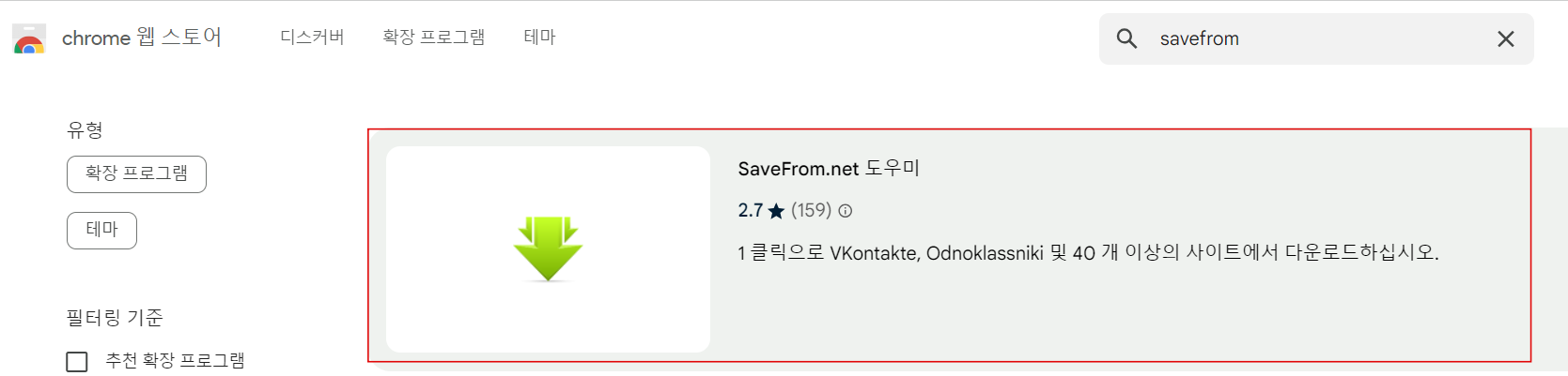 - 크롬웹스토어 화면 검색 창에 'savefrom' 검색하기